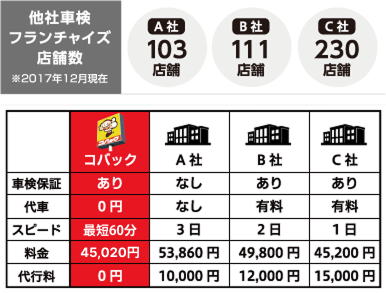他社車検フランチャイズ店舗数